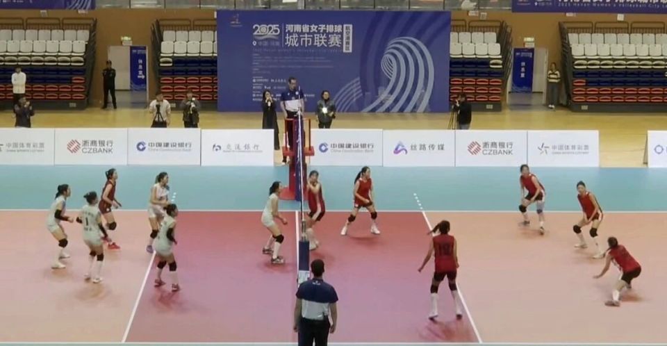 热场表演结束后,双方队员入场,比赛正式开始。第一局,开封龙亭队开局以5∶2领先,航空港区队虽占据主场之利,却被开封龙亭队打了个措手不及,分差最大时竟落后9分。节奏被打乱的航空港区队失误连连,开封龙亭队乘胜追击,以25∶17先下一城。